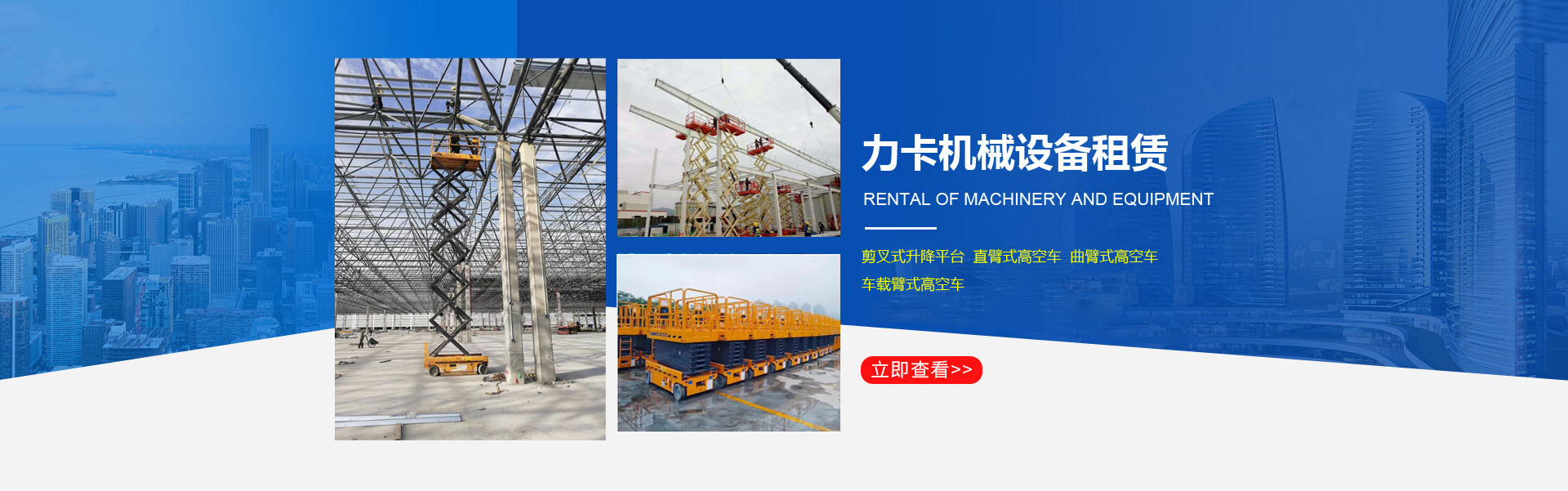 洛陽力卡機(jī)械設(shè)備租賃有限公司是一家從事高空作業(yè)平臺(tái)租賃的企業(yè)。公司現(xiàn)有6-12米剪叉式升降平臺(tái)、16-20米曲臂式高空車、20-58米直臂式高空作業(yè)車、自行越野剪叉車等,車輛新、型號(hào)齊全、可滿足各種高度、各種環(huán)境的高空作業(yè)。公司全部采用品牌設(shè)備安全又可靠。